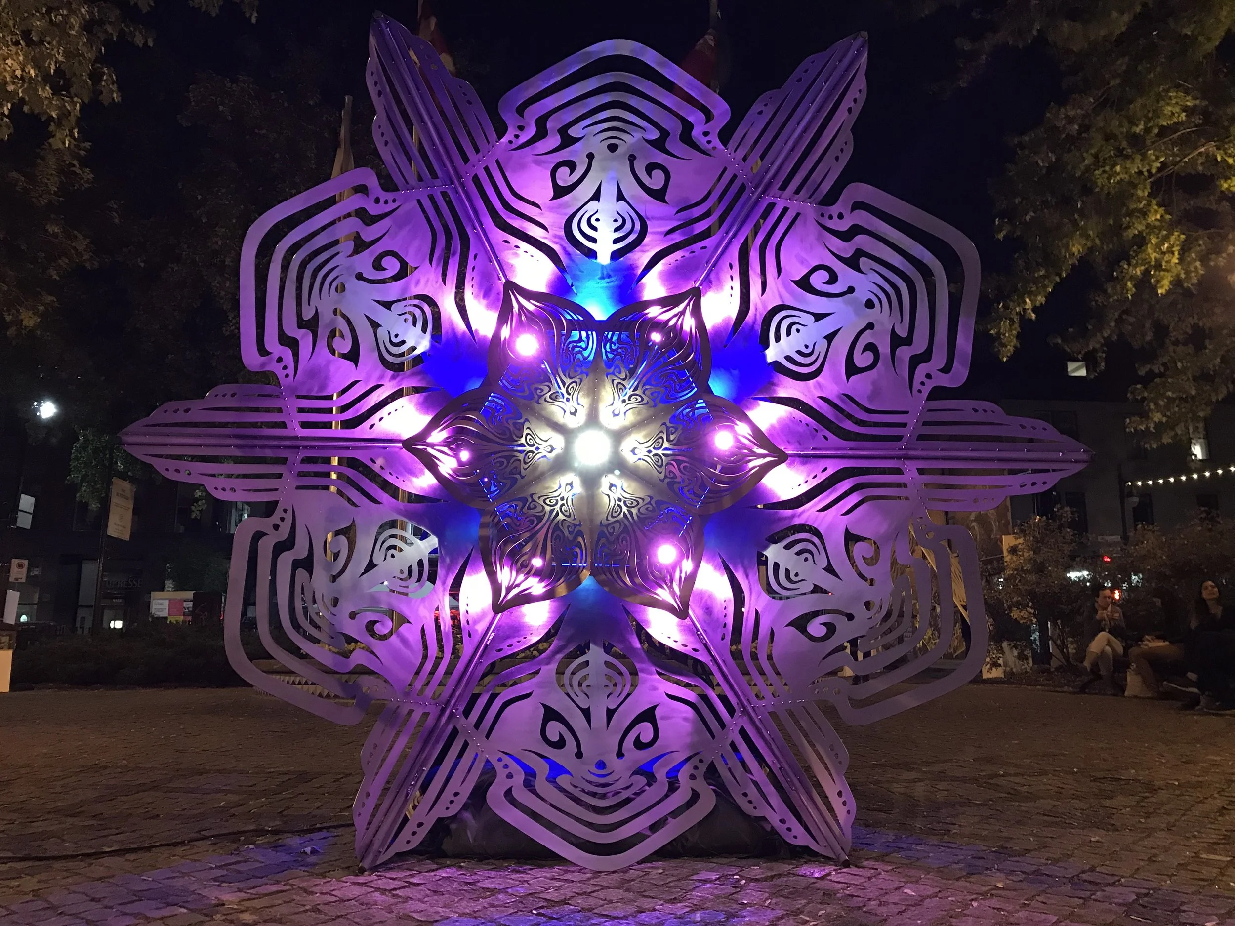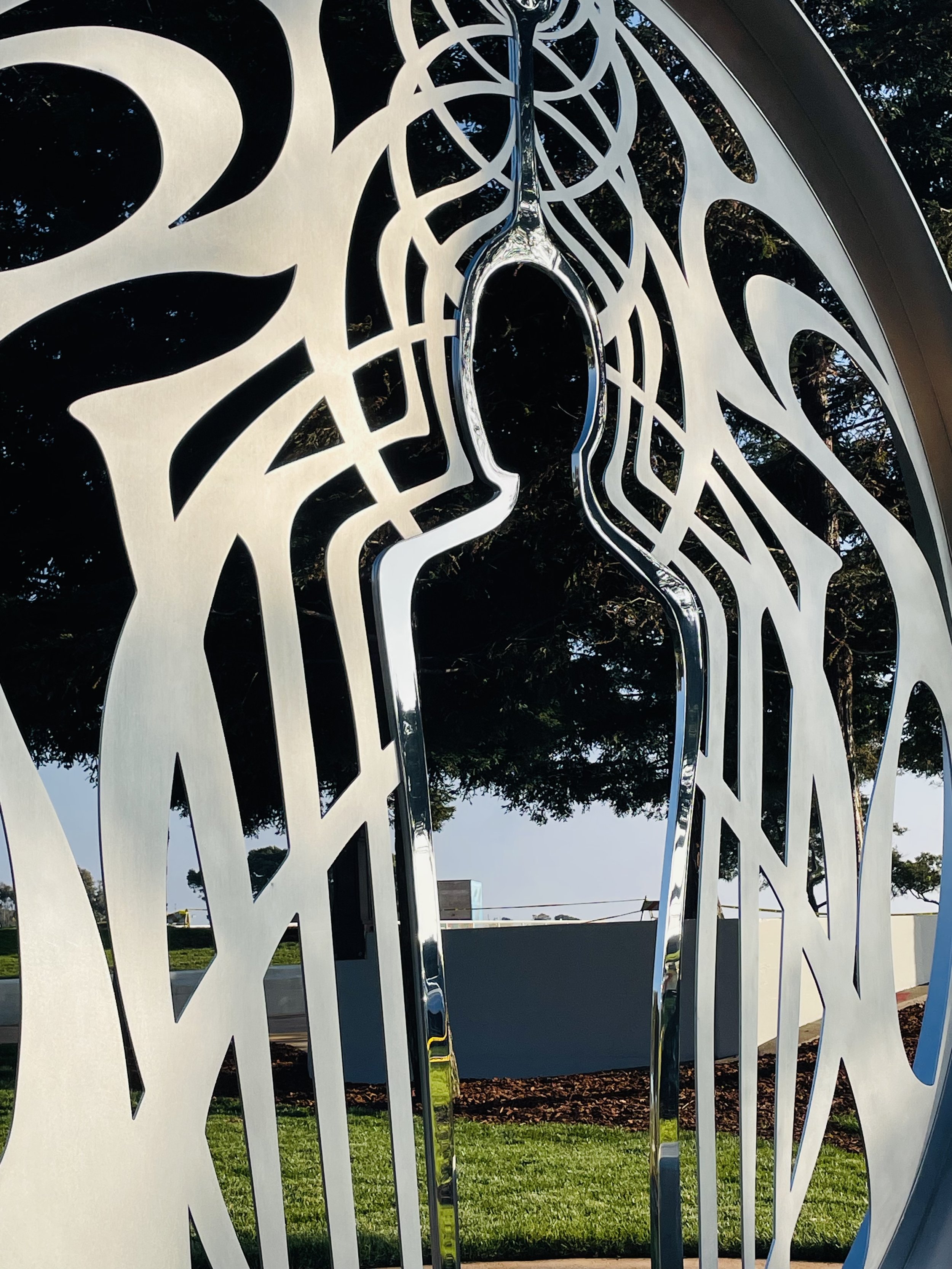 She synthesizes structural steel, mirror and L.E.D. light programing to construct conceptual work that is developed through 3D modeling software, and CNC laser-cutting, which results in the fabrication of publicly commissioned artworks to precise structural engineering standards.